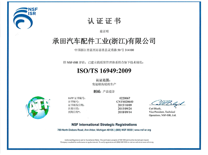 ISO認證證書(shū)